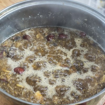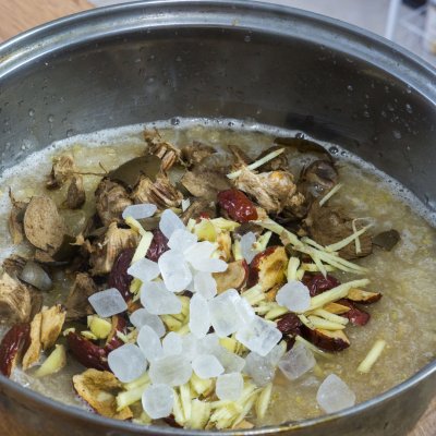 4、最后再加50克冰糖,大火煮開后轉小火繼續煮半個小時,然后關火放涼;