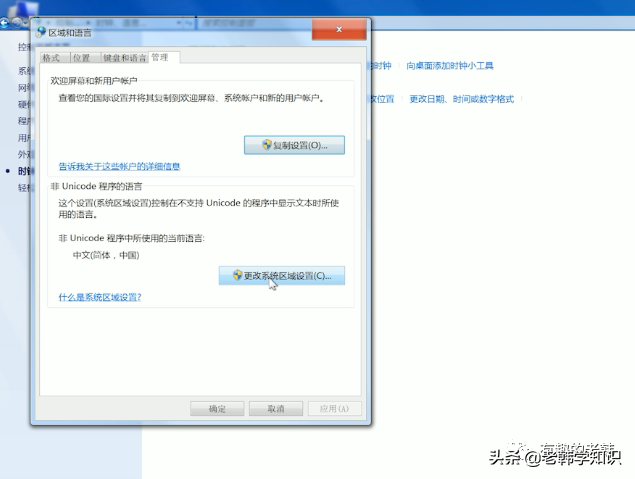 四、進入“管理”界面,點擊“更改系統區域設置”。