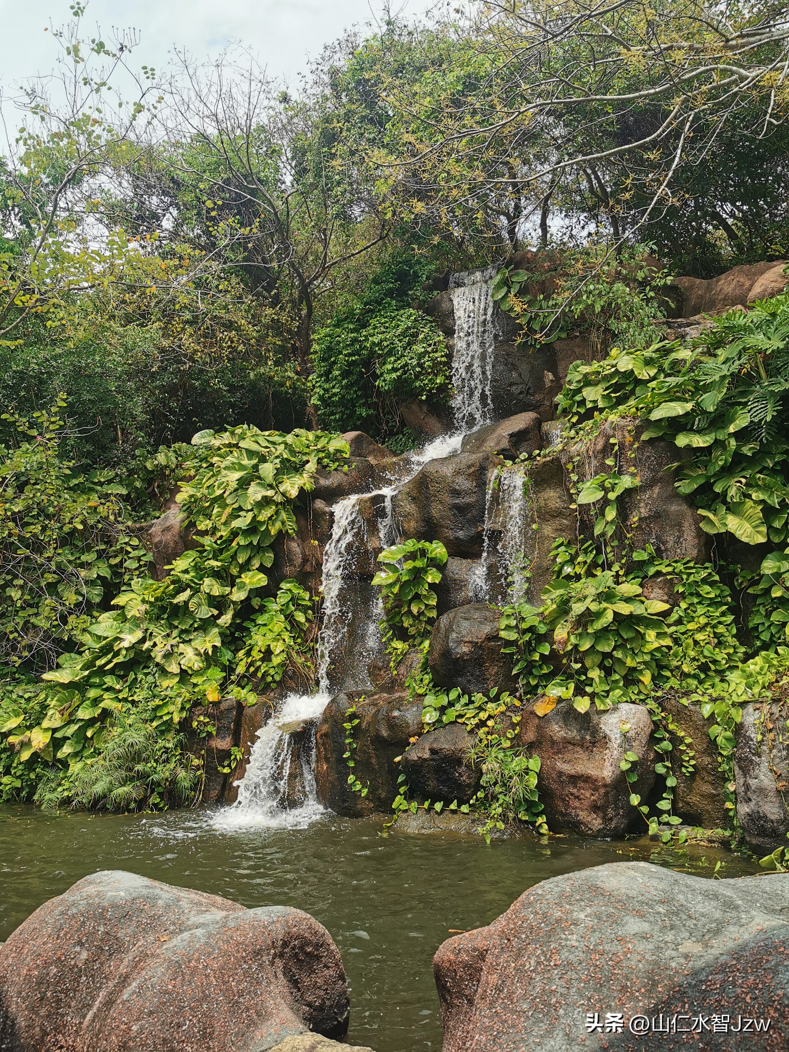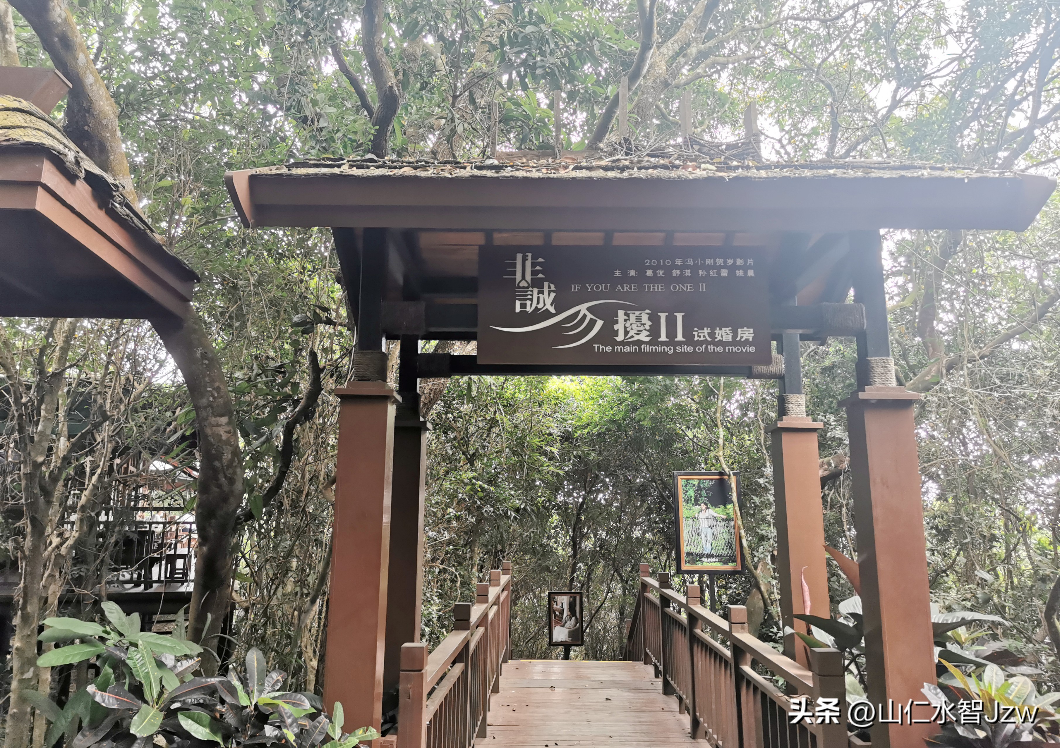 下午游覽亞龍灣。這個景區面積不小,據說一千五百多公頃,大致可分為熱帶雨林區、度假別墅區和海濱風光區。到停車場換乘交通車,經蘭花谷直上紅霞嶺山頂,既一路觀賞那些說不出樹名但遮天蔽日枝條交錯覆蓋整個山區的熱帶雨林植物,還可站立山巔仰觀云天俯瞰大海,概覽亞龍灣全貌。下車后一路走過大佛石、玻璃棧道、滄海樓、天堂廣場和天堂小街,還看到電影《非誠勿擾二》的外景地。在廣場時遠眺亞龍灣海濱,云霧繚繞,仙氣飄飄,海中小島若隱若現,如入瑤界天境。