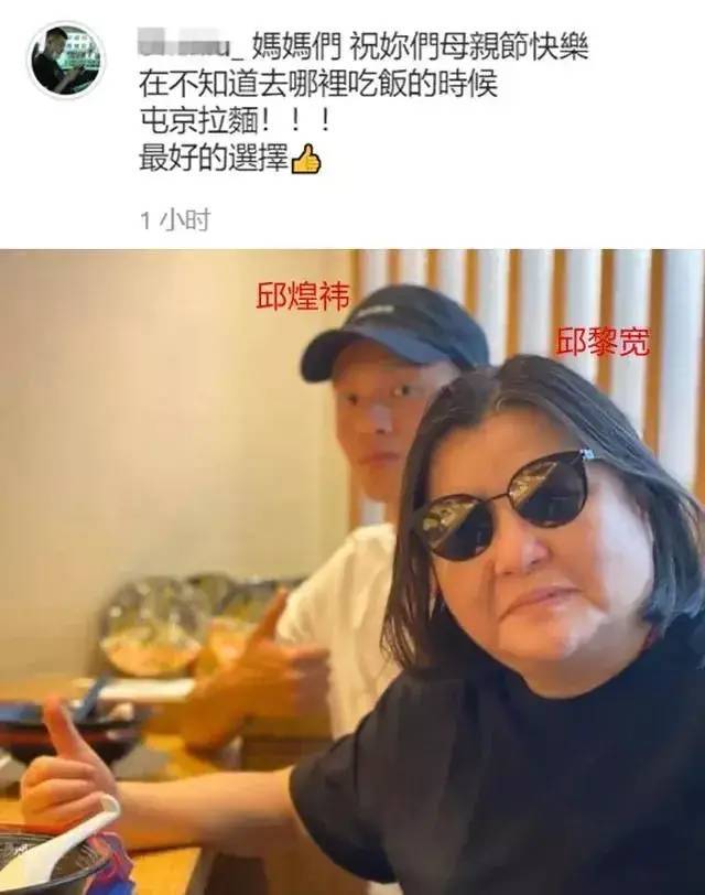今年的母親節,邱煌祎雖然在個人社交賬號上曬出一張與養母邱黎寬聚餐吃拉面的照片,并配文稱:媽媽們,祝你們母親節快樂!