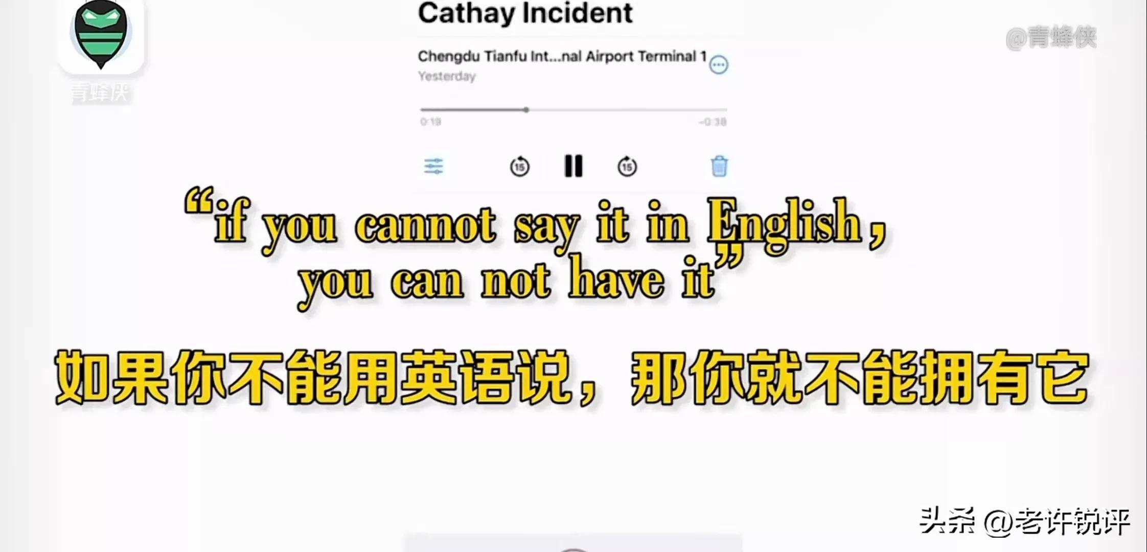 才偶然聽到她們用英語交流期間,歧視那些不會英語和粵語的乘客,為了保留她們歧視乘客的證據,自己還錄了音。