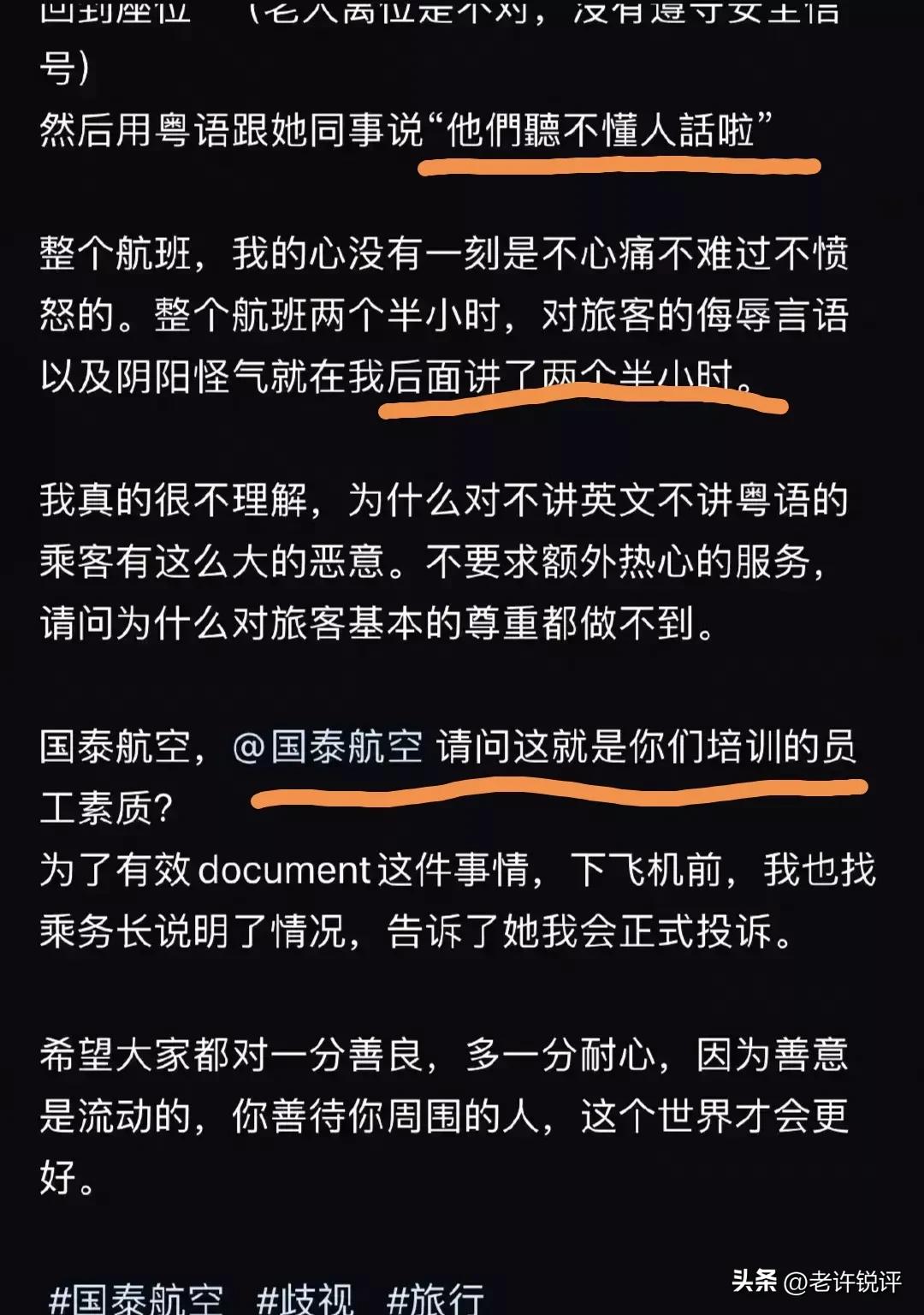 內地這么大市場,國泰理應為飛內地的航班配足能講普通話的空乘人員,