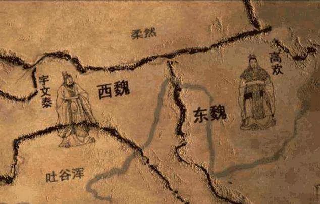 北魏末年,北魏孝武帝不滿高歡專權,帶著三號跑了,投靠與高歡為敵的關中軍閥宇文泰,高歡另立新帝,是為東魏。宇文泰也不是好人,弒殺孝武帝,另立新帝,是為西魏,北魏就此分裂。