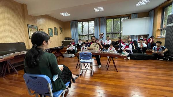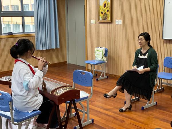 江南絲竹是四平社區重點打造的非遺項目,街道在打虎山路第一小學、楊浦高級中學、鐵嶺中學等均成立了校園非遺傳承點。日前,鐵嶺中學的江南絲竹民樂團在因疫情而暫停一個學期后又恢復往日活力,國家級非遺項目江南絲竹市級傳承人阮弘來到校園,開啟新一年的江南絲竹樂團招生。