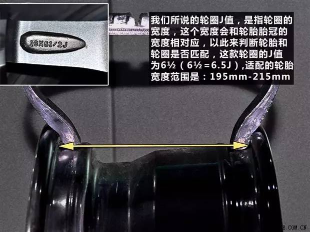 輪轂的J值有一個對應的表格,例如上圖寫著16x61/2J(16x6.5J),對照表格,輪轂的寬度選擇范圍(195-215),選擇205為最佳!