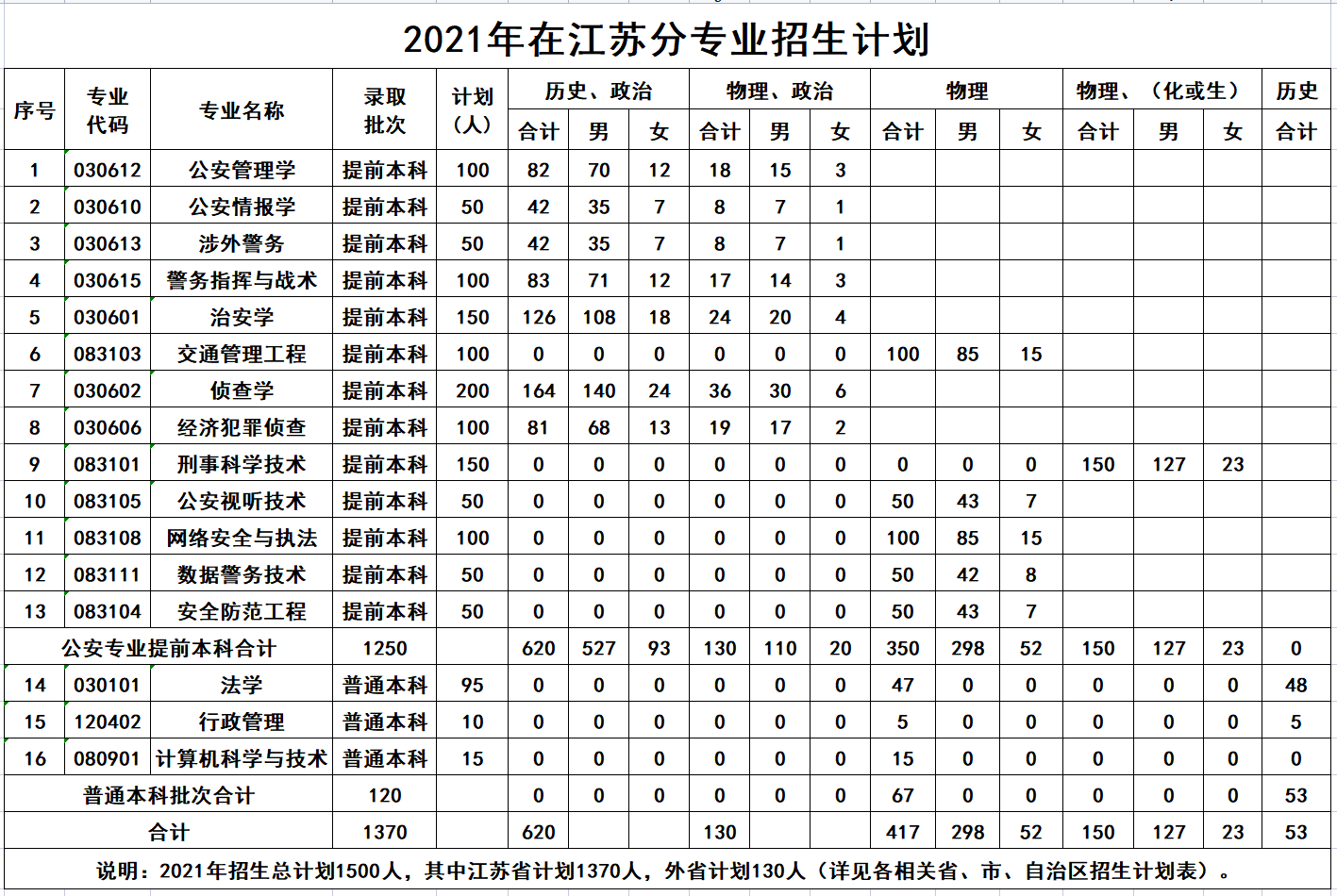 該校每年在江蘇省內今年招生了1370人;外省招收了130人,考生報考警察院校在新高考省份一定要注意必須政治學科;否則到時候是無法報考的;還要有過硬的身體身體素質,畢竟未來工作可能是公安第一線和犯罪分子做斗爭的。入學以后大量的體能訓練是必修科目,所以報考該校體測和政審都是必須的。家庭成員有誤點的考生需謹慎報考!政審不過也沒有用的!