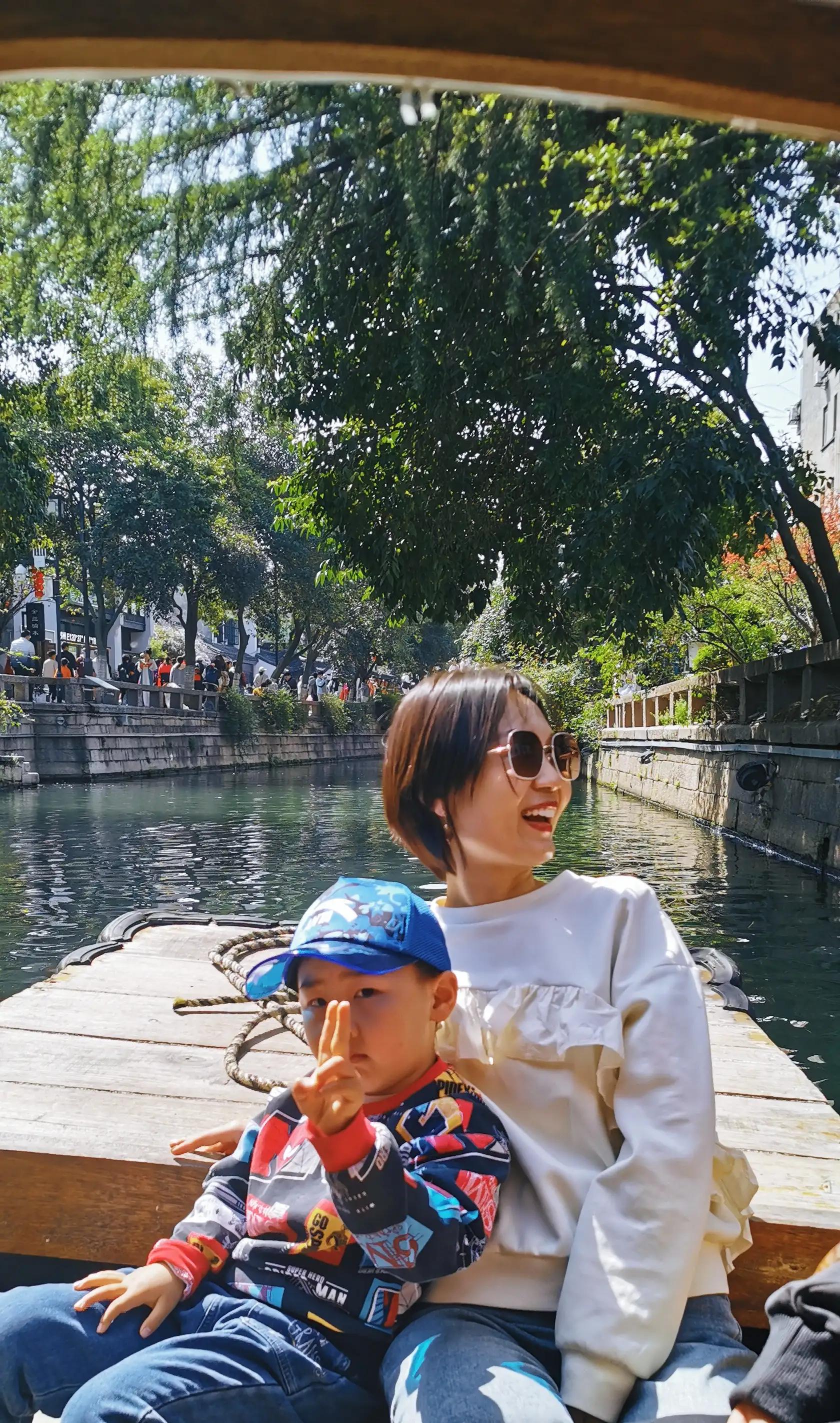 平江路搖船40/人,一米二以下兒童免費,全程大概半個小時。是手搖船,給小費的話船夫會給唱當地的民謠。小風一吹,還是很舒服的。