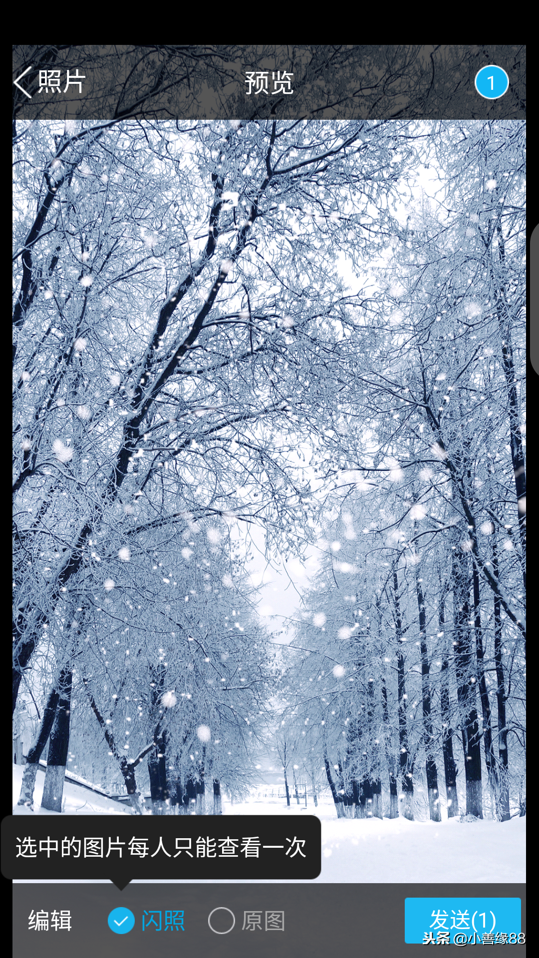 在你發送給好友的圖片中會提醒你只能查看一次,時間為5秒,而且不支持截屏