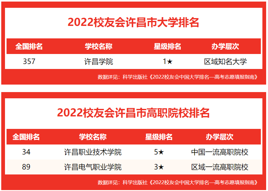 導讀許昌職業技術學院高居校友會2022許昌市高職院校排名榜首許昌電氣職業學院躋身前三名2022校友會中國大學排名評價指標體系