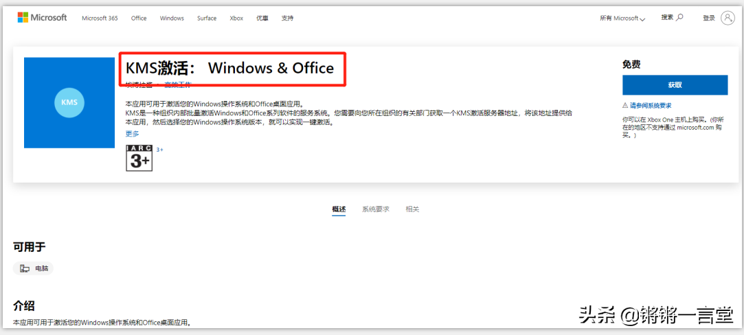 這兩天,有網友爆料:微軟應用商店,上架了一款“KMS激活工具”!