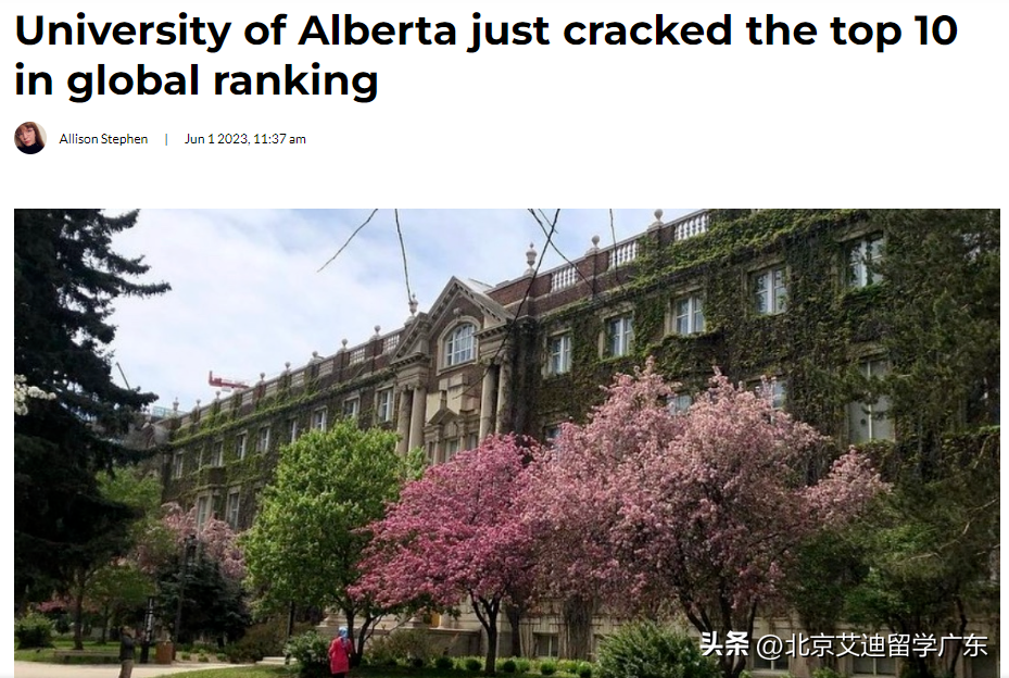 A: en...或者我先跟大家介紹一下我的母校吧!阿爾伯塔大學的醫學領域、工程領域,特別是土木工程、生物醫學等專業都是非常厲害的。常年穩居在加拿大的前3、4名。