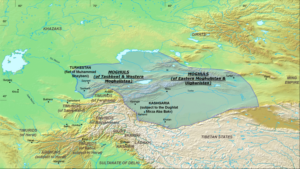 16世紀初,印度莫臥兒帝國的締造者,蒙古后裔巴布爾派親表兄弟薩亦德率大軍4700余人北征,占領了喀什噶爾、和田、葉爾羌等地,并建立起葉爾羌汗國。此時,楚河上游、伊犁河上游、伊塞克湖等地域的吉爾吉斯人成為葉爾羌汗國的臣民。
