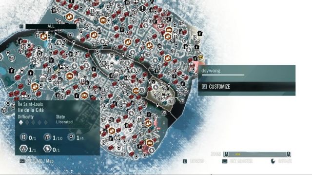 下圖中展示了刺客信條-大革命寶箱收集地圖