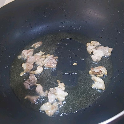 3、熱鍋冷油下五花肉