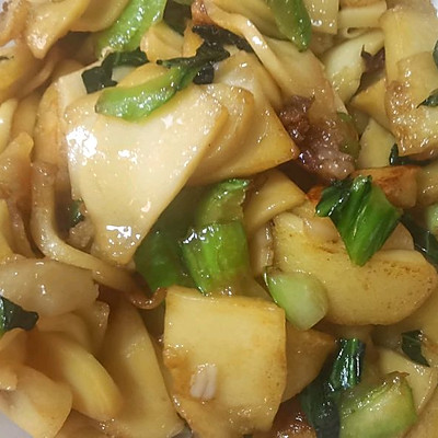 導讀By 了無張用料年糕 200g生抽 1勺蒜 2瓣鹽 半小匙食用油 適量五花肉 50克做法步驟1、五花肉切絲2、年糕切片3、熱鍋冷油下五花肉4、青菜切片5、放入6、年糕7、生抽翻炒變色8、出鍋做