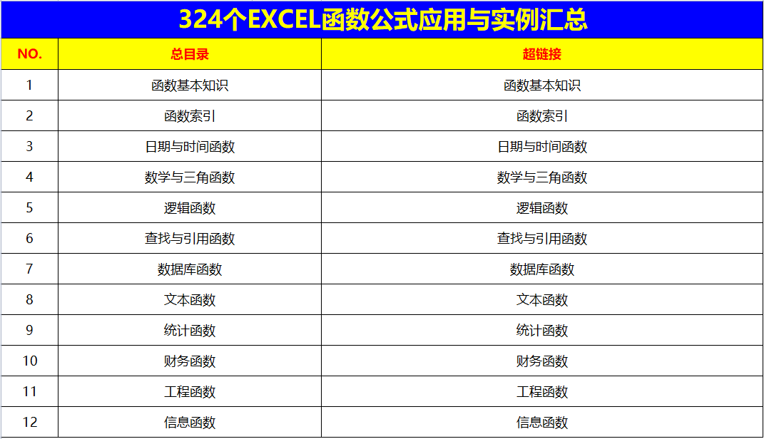 篇幅有限,324個EXCEL函數公式應用與實例匯總就不一一展示了,