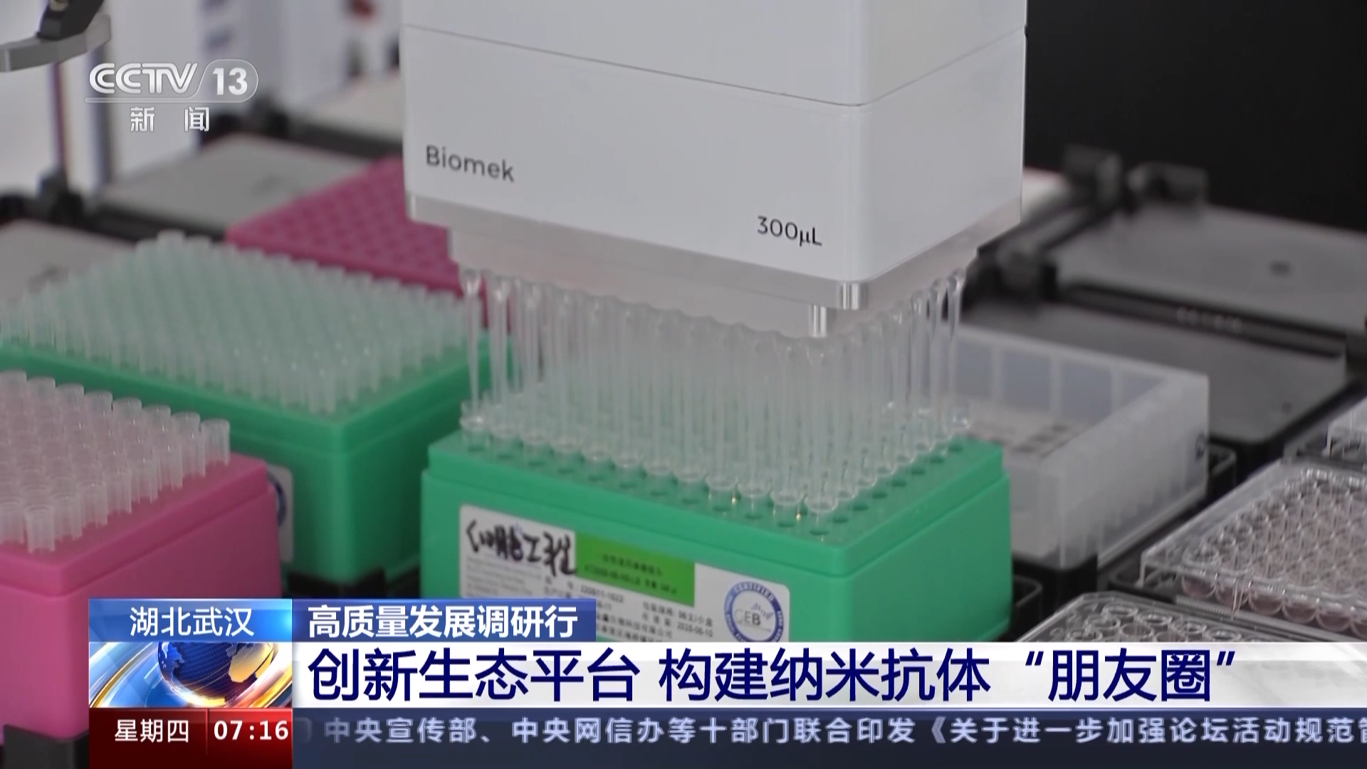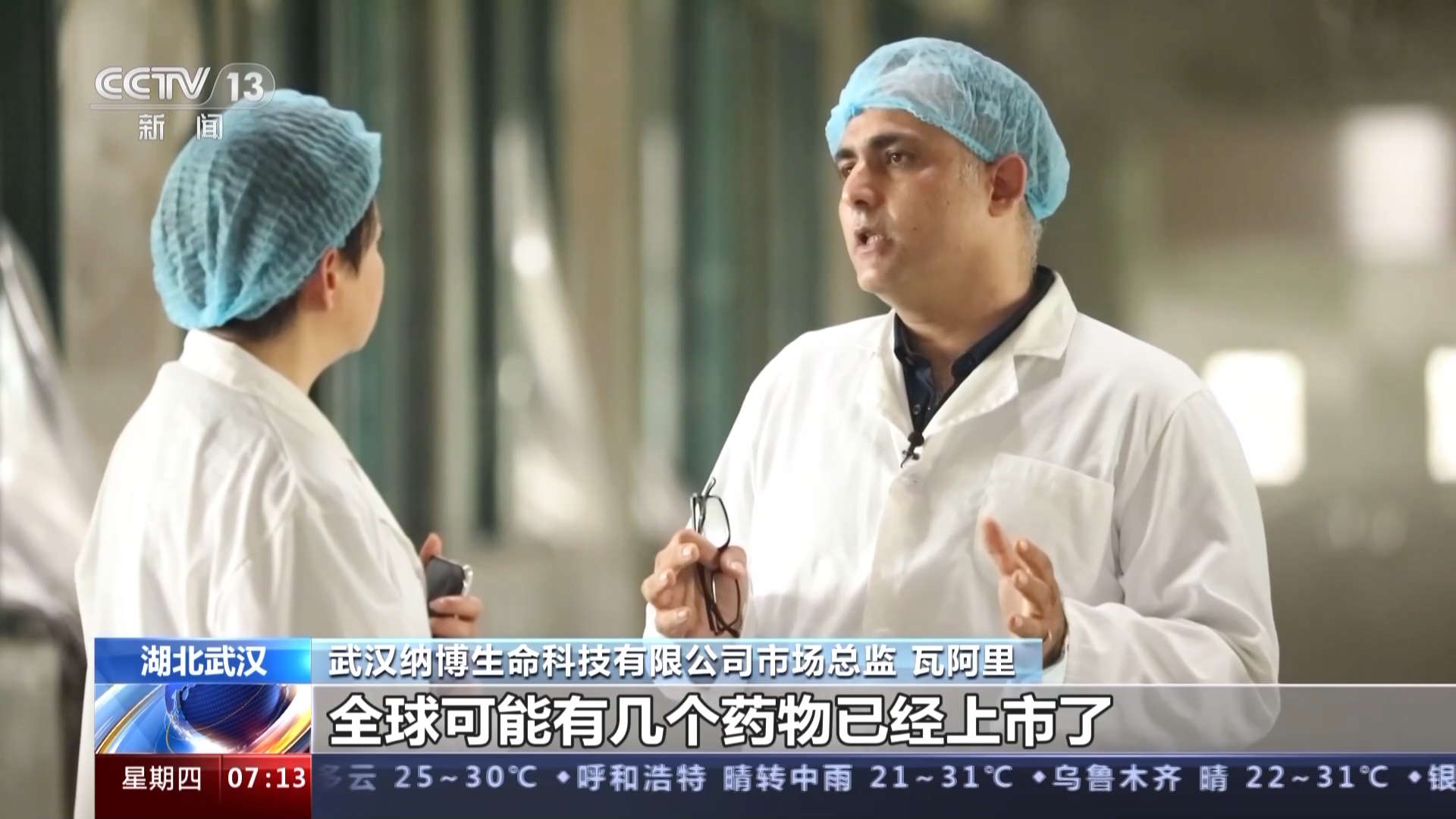 武漢納博生命科技有限公司市場總監瓦阿里:現在納米抗體,全球可能有幾個藥物已經上市了,可以用了,但是有幾十個藥物現在還在臨床三期階段,所以就是說明什么,保護人類的健康,目前看到的這個是未來。
