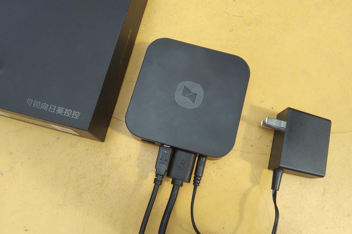 向日葵控控A2的精華全體現在接口上,全部安排在機身四周,并且做了科學的歸類,你比如面向電腦主機的接口就有一個RJ45有線接口、一個USB-B接口以及一個HDMI-in接口,最旁邊還有一枚供電插孔。理論上說,只要接好上圖這一面的連接線,控控A2便可以開始下一步設置和工作了。