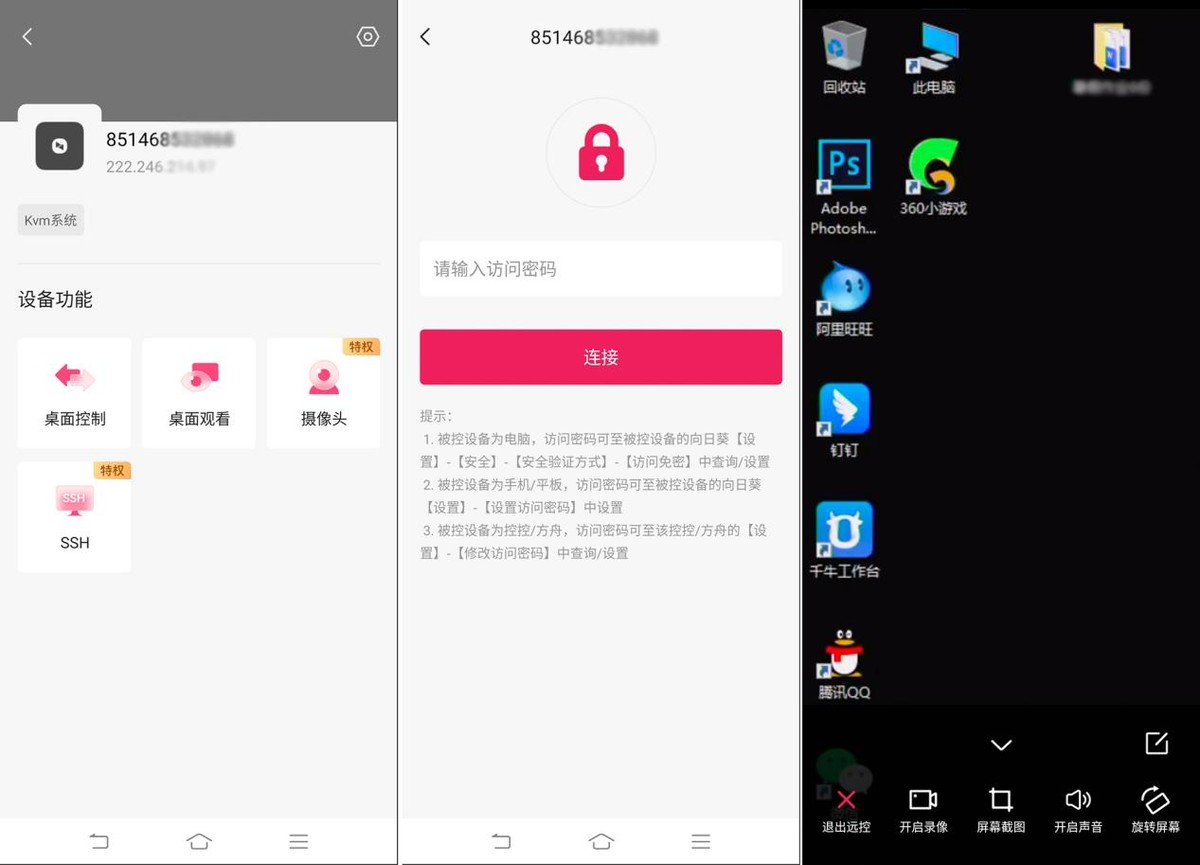 目前,向日葵控控A2支持包括桌面控制、桌面觀看、攝像頭和SSH等4種功能,對于遠程控制而言完全夠用。并且做了訪問安全性控制,不怕數據泄露。安全性方面,向日葵控控A2采用多因子驗證,全鏈路金融級加密,國際2048位RSA非對稱秘鑰交換,基于AES加密機制的自主P2P數據傳輸協議,能夠很好地保護本地數據安全。