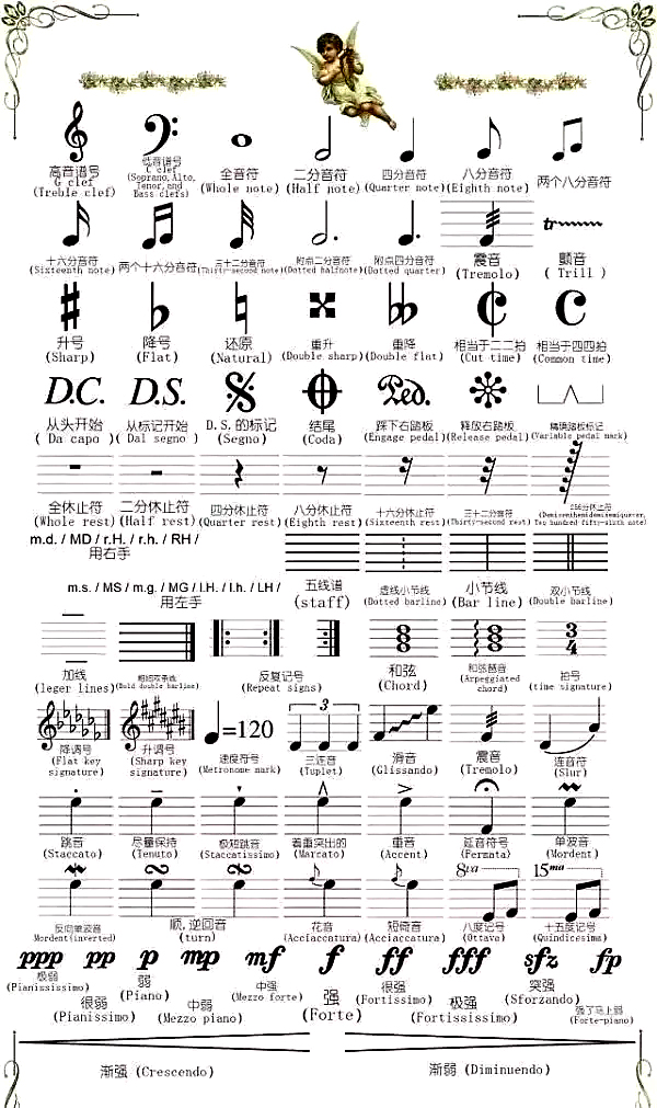 下面奉上最全五線譜符號大全,收藏它,以后遇到不認識的就翻出來看看,再也不用一頁一頁翻書找了?