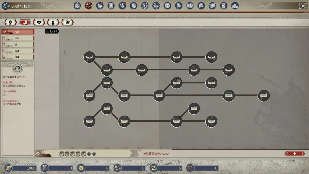 僅僅是投擲類的戰斗方式就有這么多進階技能可以解鎖