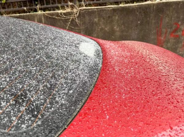 小車的尾部有一層薄薄的雪。記者吳彥樾攝