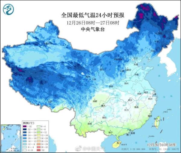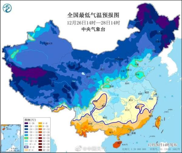 中央氣象臺12月26日10時發布低溫藍色預警
