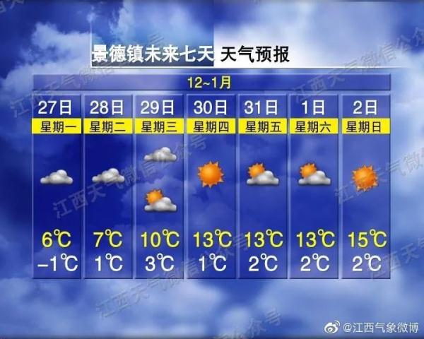以下是江西省主要城市和景區七天天氣預報