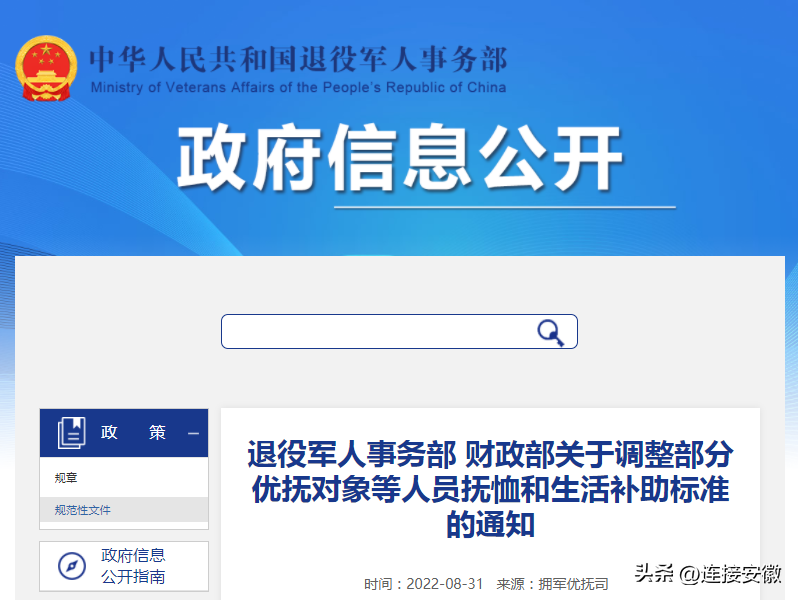 經研究,決定從2022年8月1日起調整部分優撫對象等人員撫恤和生活補助標準,現將有關問題通知如下: