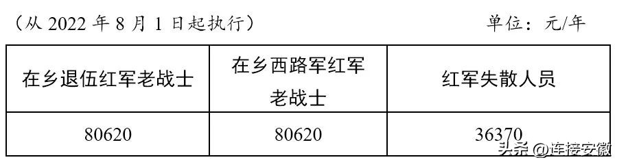 在鄉退伍紅軍老戰士、在鄉西路軍紅軍老戰士、紅軍失散人員生活補助標準表