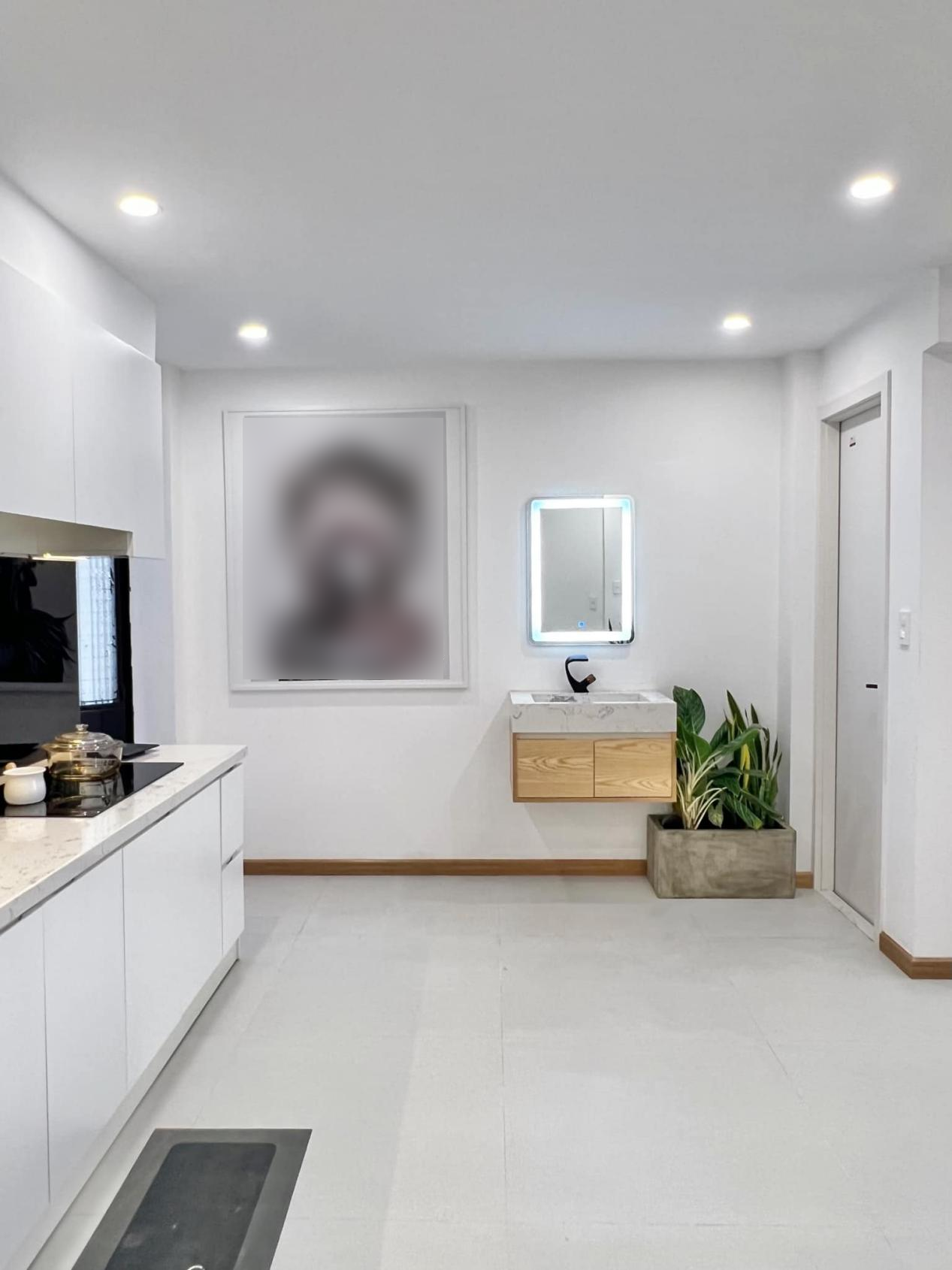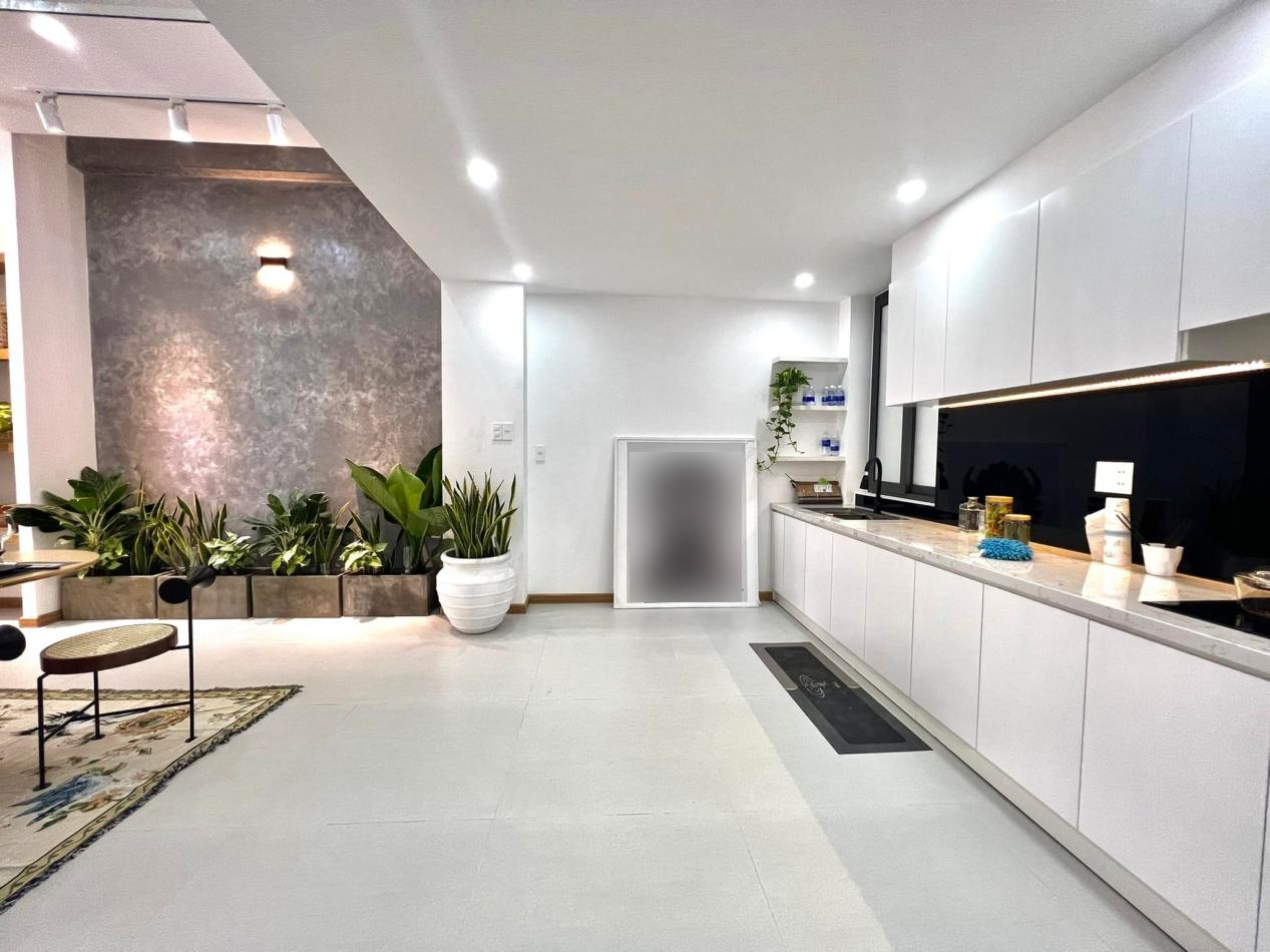 一側的廚房靠墻打造一字型臺面,洗、切、煮在同一條動線上,操作更方便。