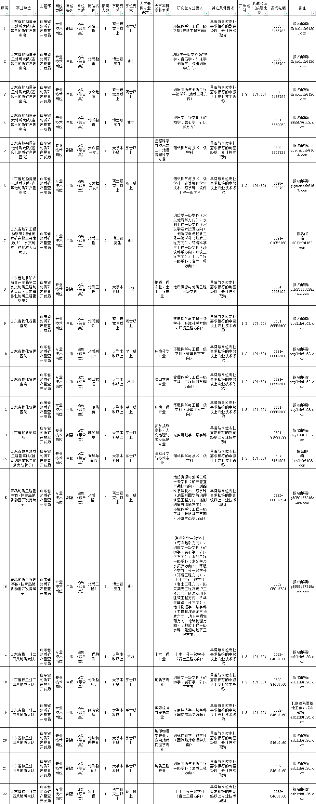 導讀日前,“山東人社”發布一則招聘通知,涉及山東省地質礦產勘查開發局所屬事業單位、山東省煤田地質局第四勘探隊、山東省通信網絡保障中心,共計招聘35人。山東省地質礦產勘查開發局所屬事業單位招聘崗位及人數擬面