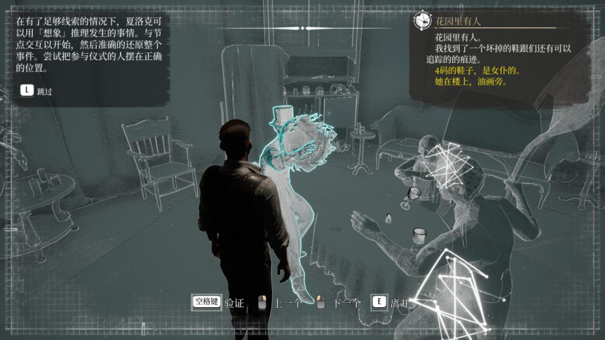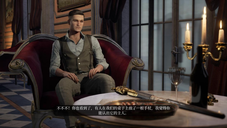 有時候,我確實很佩服夏的洞察能力,他似乎總能發現一些平常人關注不到的細節,并迅速推測出這些細節背后的真相,讓我輸得心服口服。而更令我驚訝的是,有時他只要隨便掃視幾眼路過的客人,就能推斷出他們的身份、習慣甚至性格。也正是憑借著這項技能,我們才順利地在一間房間中,找到了那位手杖的失主——脾氣暴躁、渾身散發著酒氣,拳頭上甚至還留有一絲血跡的克雷文勛爵,現場還有剛被他一拳揍翻在地的巫師,以及被眼前景象嚇到暈厥過去的勛爵的情人。