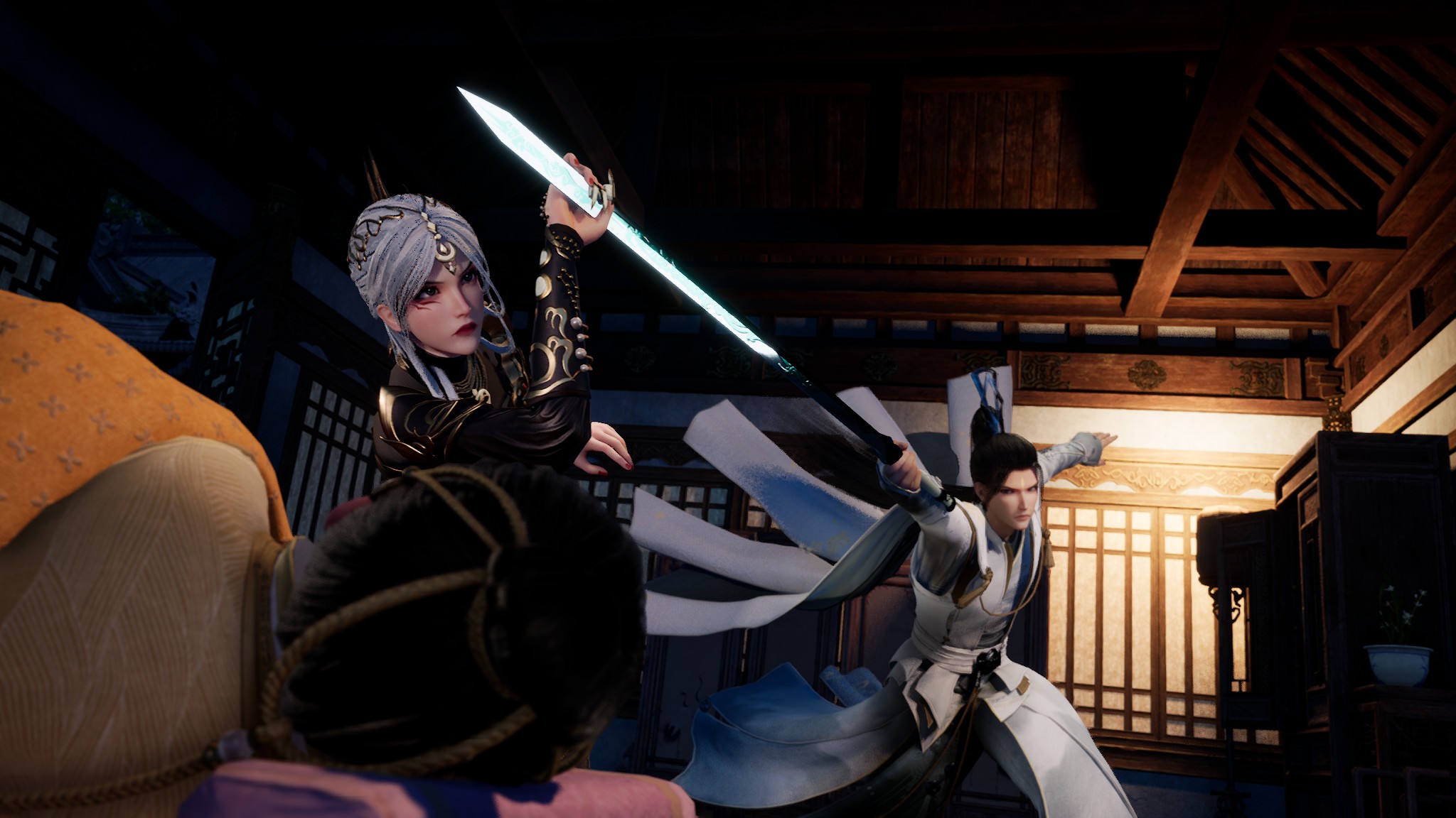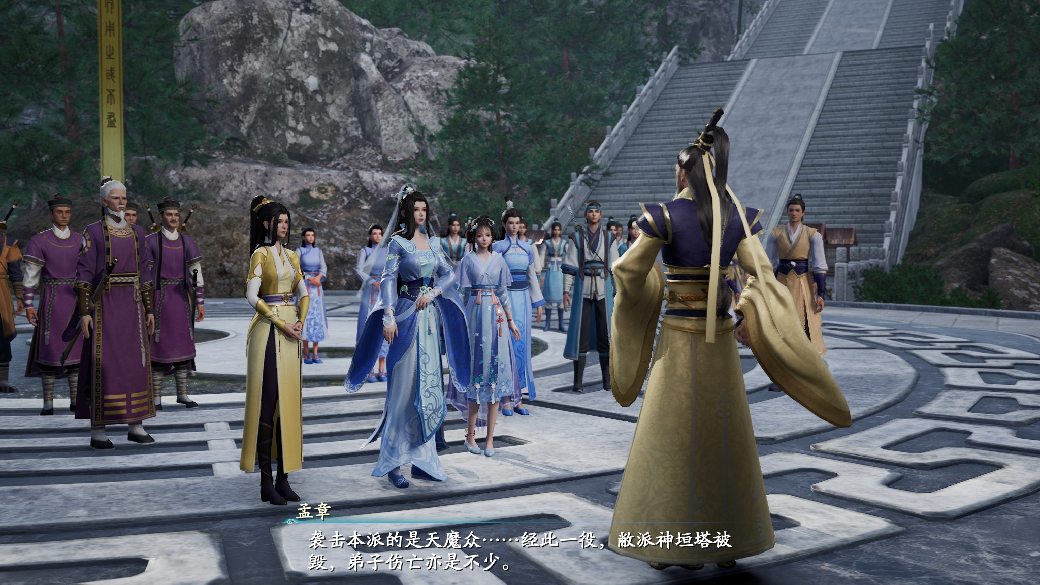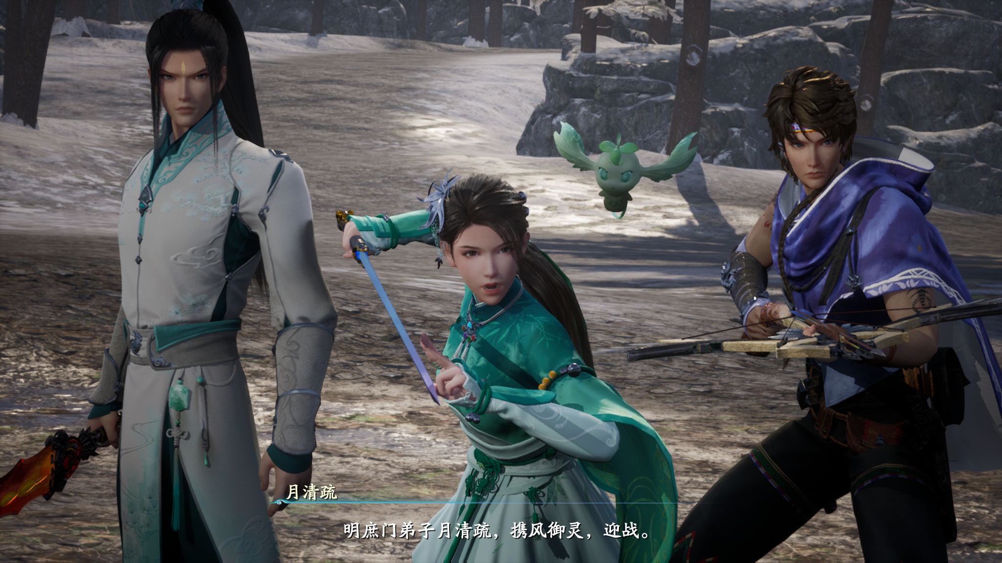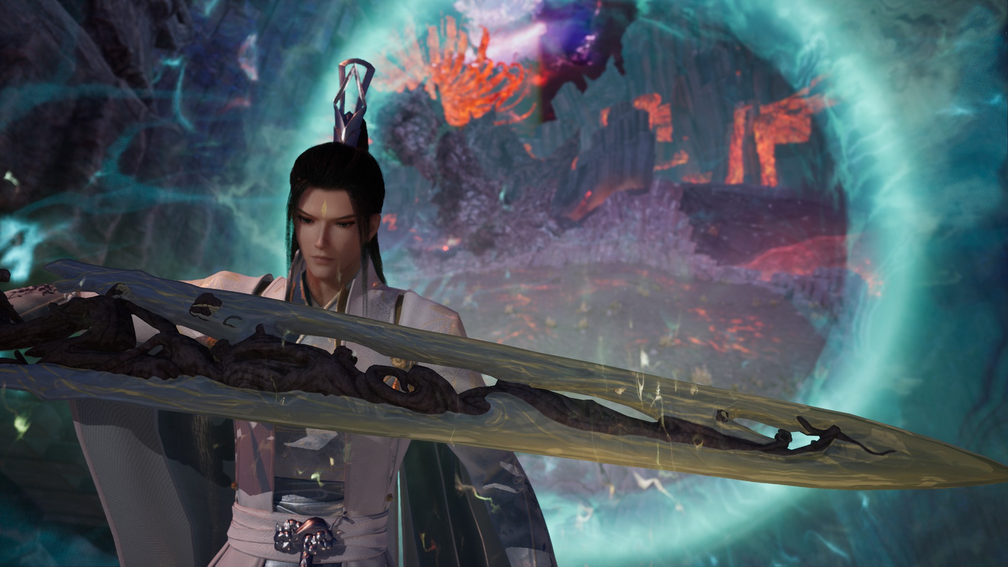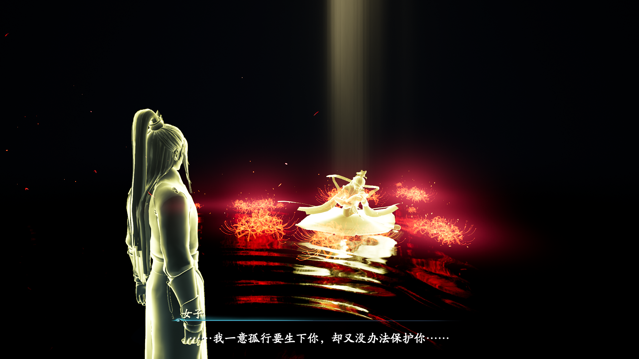 除了在定格的遠景畫面上發力,在演出上《仙劍奇俠傳7》同樣呈現了不錯的質量,盡管大概是出于經費的掣肘絕大部分演出以站樁對話的形式進行,但做了即時演算動畫的部分從導演視角到特效呈現都非常不錯,甚至花樣上也談得上豐富多彩——我們在上圖中可以看到小秋的回憶還學習了一把《嗜血代碼》中的演出形式。