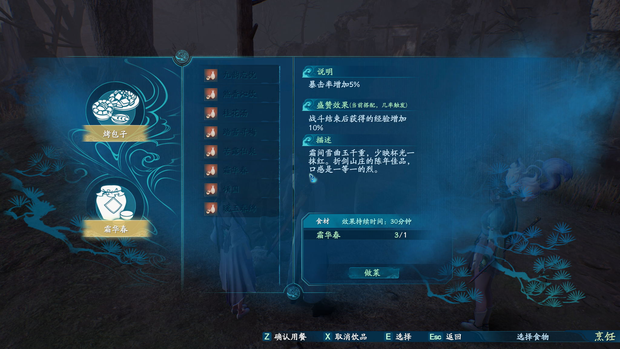 除此以外還存在著餐飲和御靈兩個系統,餐飲的話可以選擇食物和酒水各一份,會存在不同的動畫(盡管簡陋)和對應臺詞,算是還不錯的設定(加上女二是法爺毀天滅地、男二是逗趣樂子人讓這游戲有了一點《破曉傳說》的既視感)。