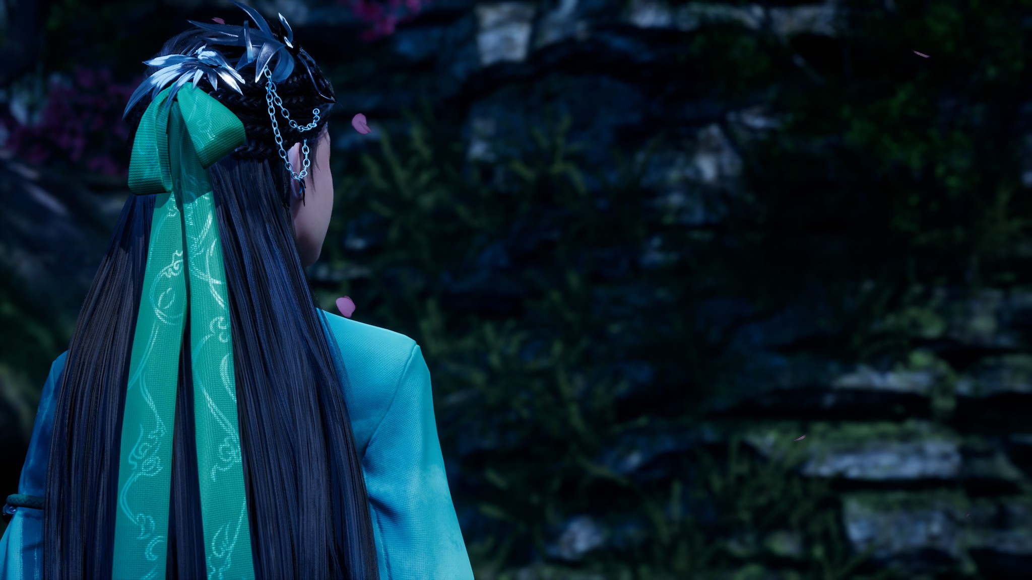 另一點值得稱贊的就是人物的衣裝服飾細節——發帶上的紋路刺繡、衣服的針織細節、發飾的金屬質感都非常出色。如果不是還需要轉過來看臉,我幾乎就要給《仙劍奇俠傳7》的畫面觀感一個接近滿分的分數,但是: