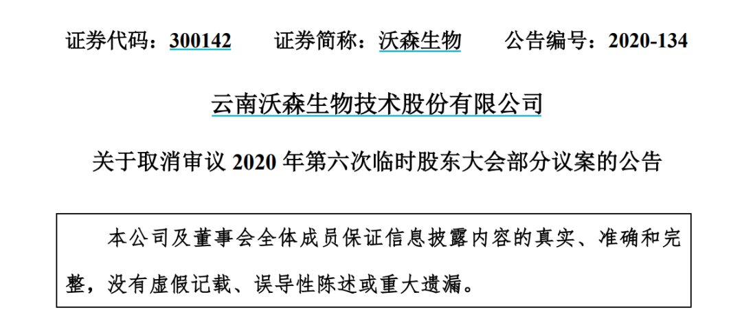 沃森生物表示,本次取消股東大會部分議案不會對公司正常生產經營活動產生影響。