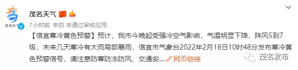導讀還來不及好好感受初春的溫暖新一輪強冷空氣又來了冷空氣+雨水結伴而來這又將是一次“濕冷魔法”[email protected]?將降至6-8℃茂名市氣象臺2022年2月18日15時發布茂