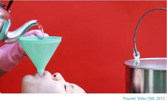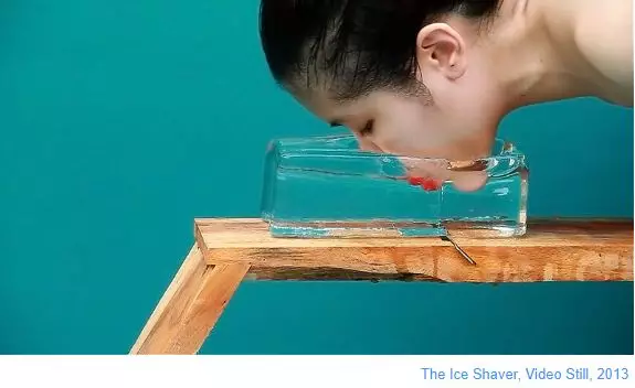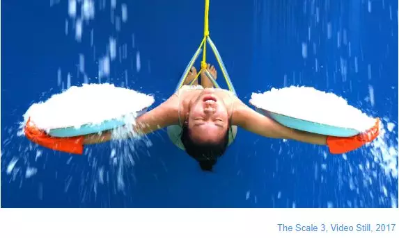 在她的早期作品《Work》中,Kawita的行為表演是模仿在某種狀態下的物件,并呈現某個特定的動作。例如魚上鉤,磅秤等。藝術家在被懸吊或是重復某一行為的過程中,探索自己身心的界限,從而讓觀眾從其戲劇張力中感受到“工具”的情緒。