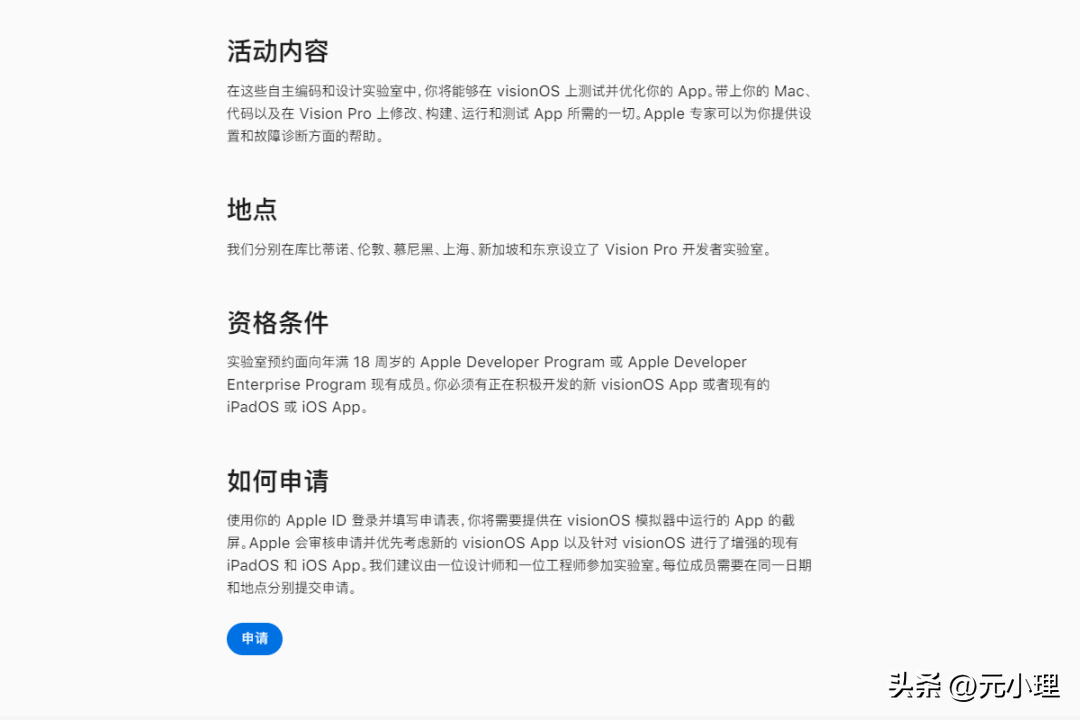申請地址為:http://developer.apple.com/origin/cn/visionos/labs/