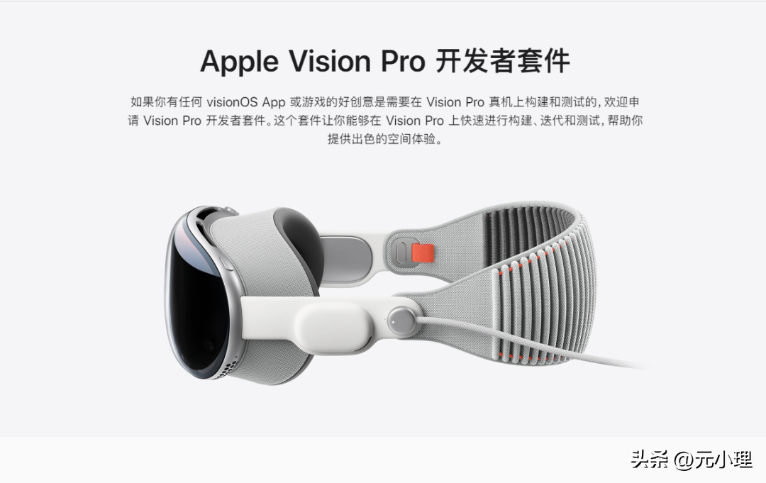 如果認為開發實驗室距離過遠或是出行有困難的用戶,也可以在官網申請Apple Vision Pro 開發者套件,蘋果官方說法為:“如果你有任何 visionOS App 或游戲的好創意是需要在 Vision Pro 真機上構建和測試的,歡迎申請 Vision Pro 開發者套件。這個套件讓你能夠在 Vision Pro 上快速進行構建、迭代和測試,幫助你提供出色的空間體驗。”