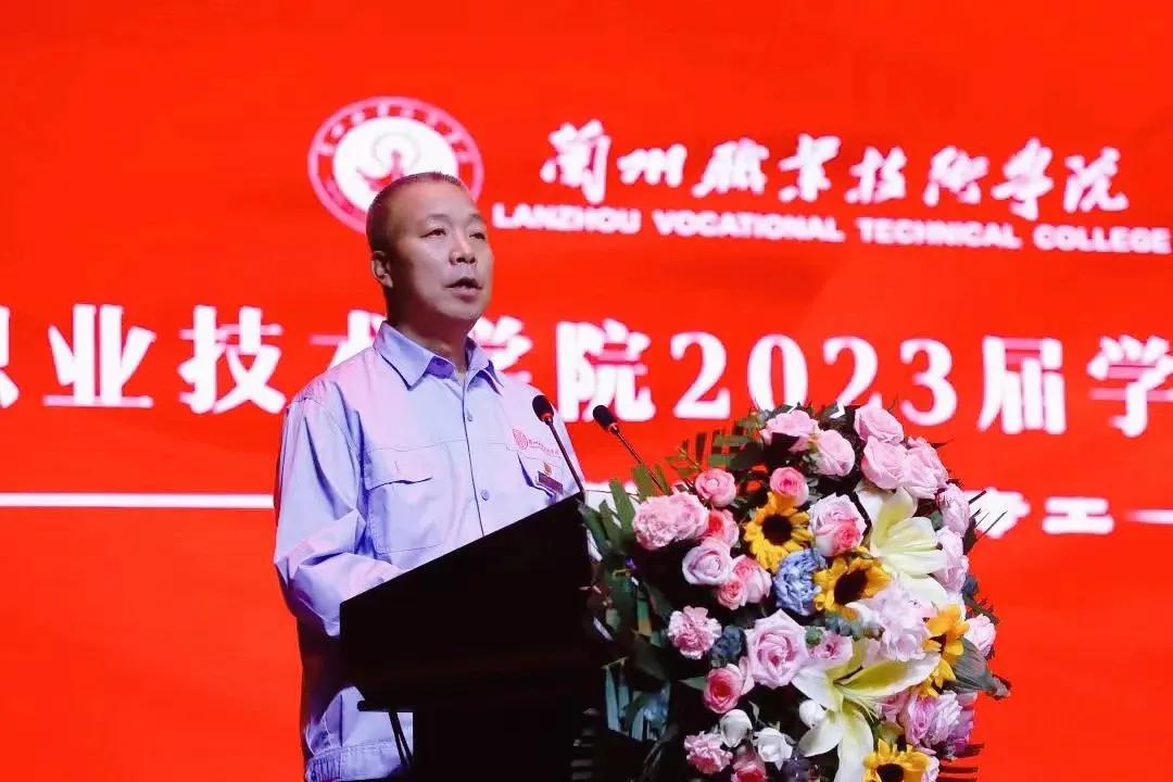 應邀參加畢業典禮的華為甘肅政企教育醫療部部長賀少輝,也以“過來人”的身份,就如何融入職場、融入社會,為學院2023屆畢業生們“支招”。