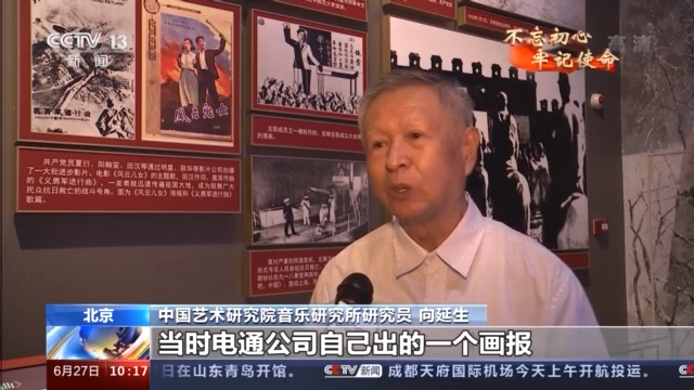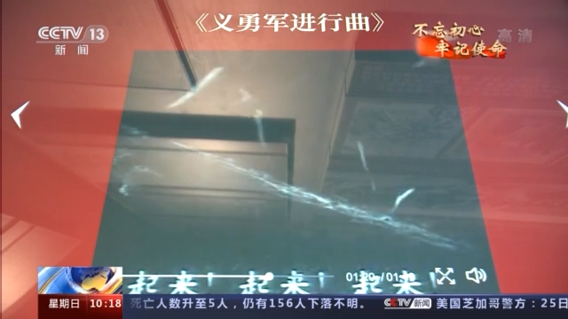 總臺央視記者 裴斐:從一樓展廳《義勇軍進行曲》的誕生,走到二樓展廳《中華人民共和國國歌》曲譜展品前,這一段展陳路線僅需要十幾分鐘,但這樣的勝利,是無數共產黨員和人民群眾浴血奮斗換來的,這鮮紅的背景板上這昂揚的旋律,永遠激勵著每一個中國人。