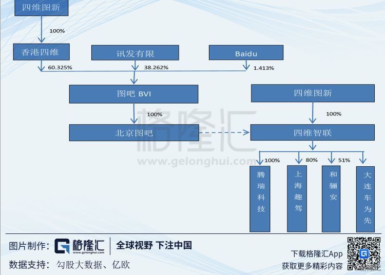 2015年,四維圖新出資2.96億元,收購北京圖為先51%股權,四維圖新(香港)出資2.2萬美元認購圖吧BVI新增股份,持股占比51%。同時,規定收購款中的0.96億元,用于收購四維圖新持有的騰瑞科技100%、上海趣駕80%、和驪安51%股權。