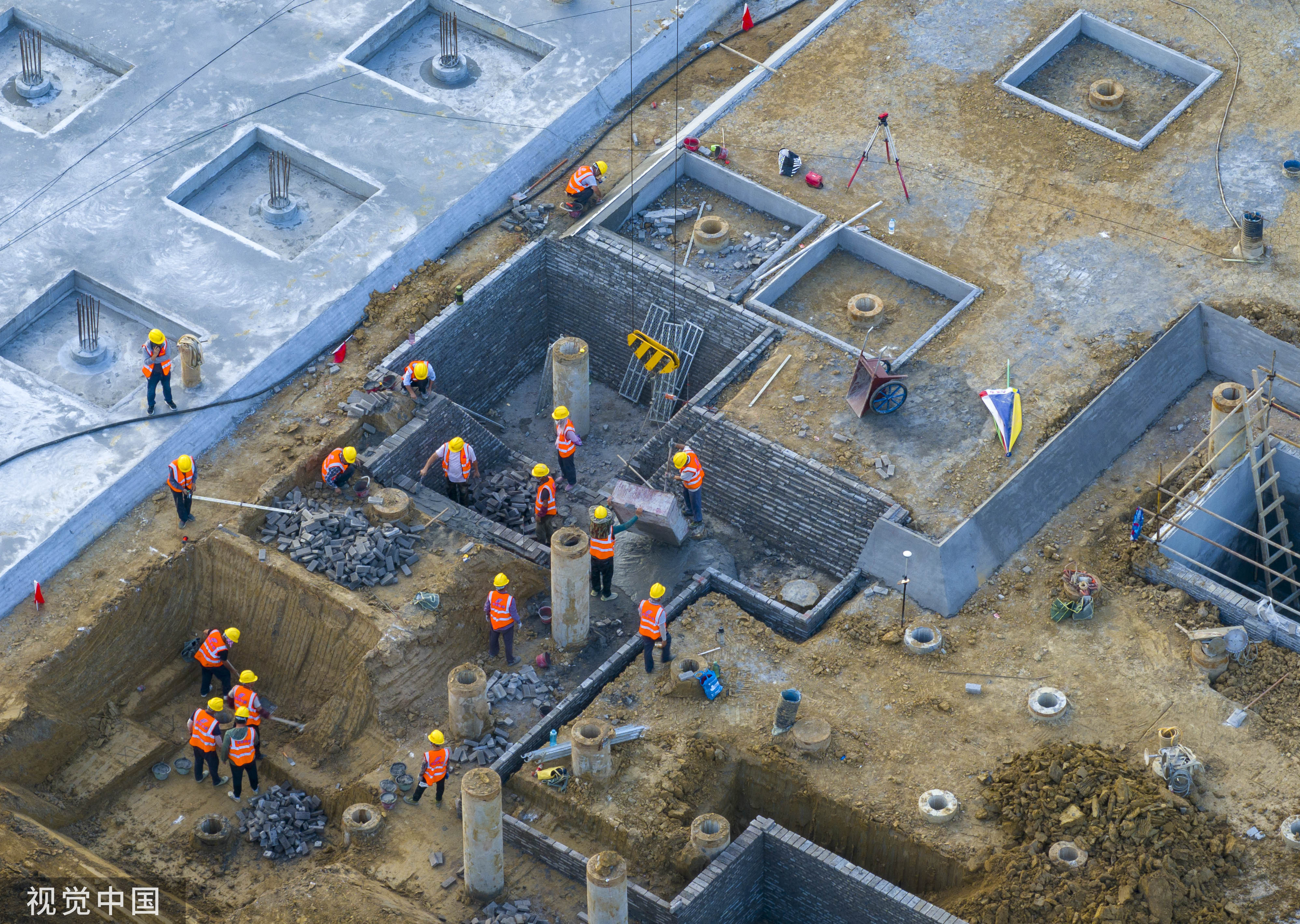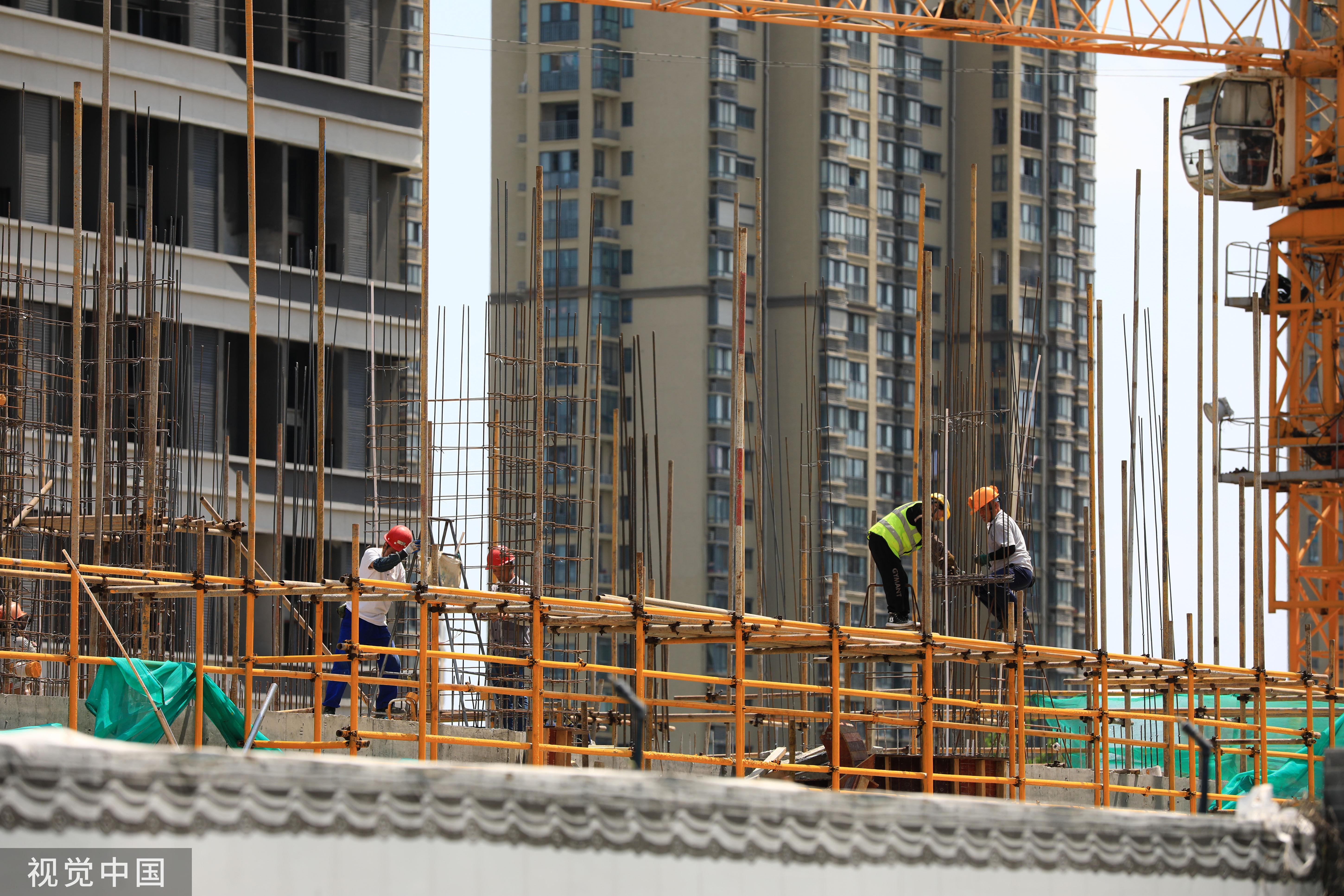 2023年8月1日,江蘇淮安,工人在清江浦區一房產建筑工地上忙碌。圖源:視覺中國
