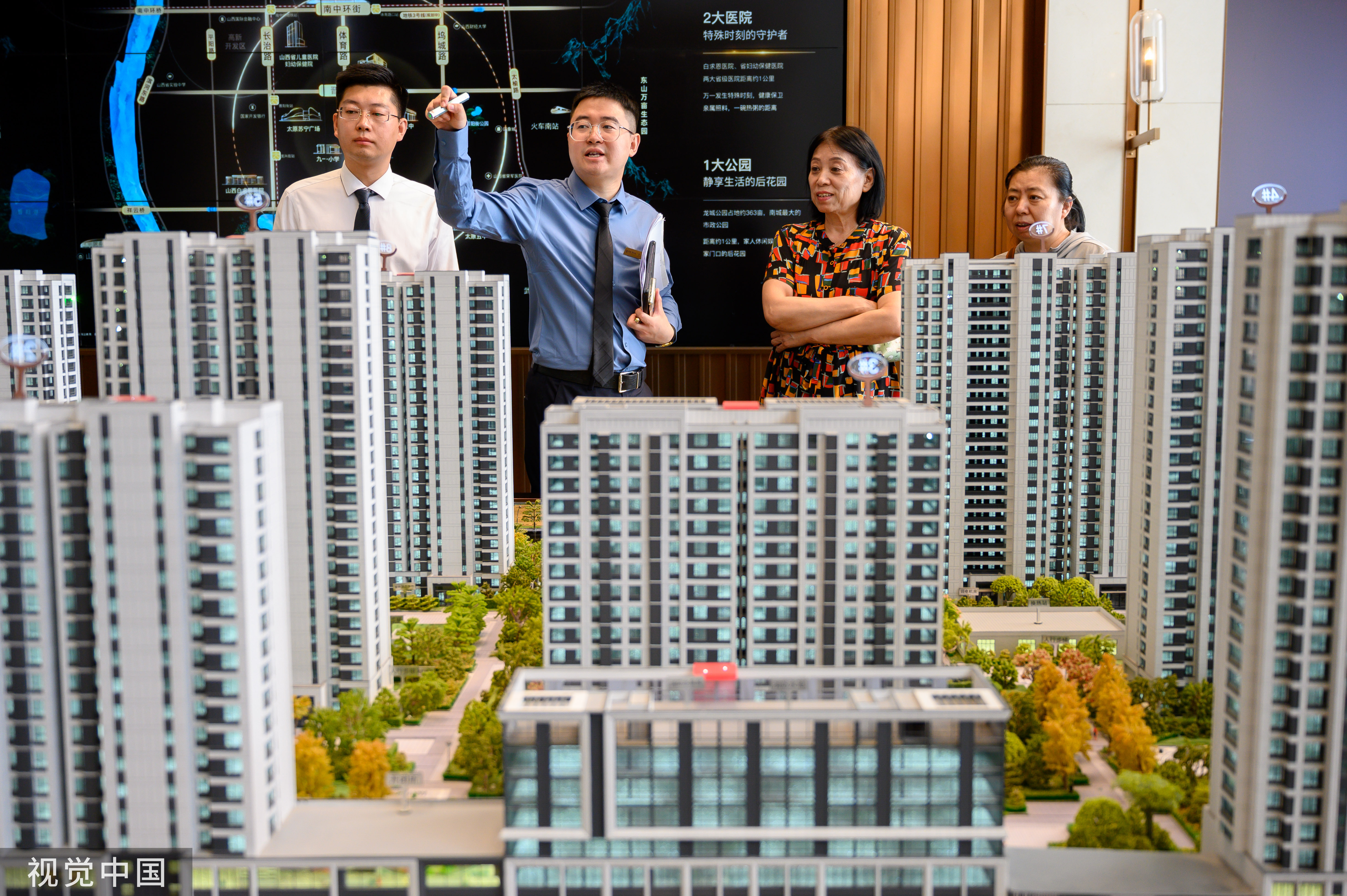 2023年6月21日,太原,一售樓部銷售人員為民眾推介商品房戶型。圖源:視覺中國