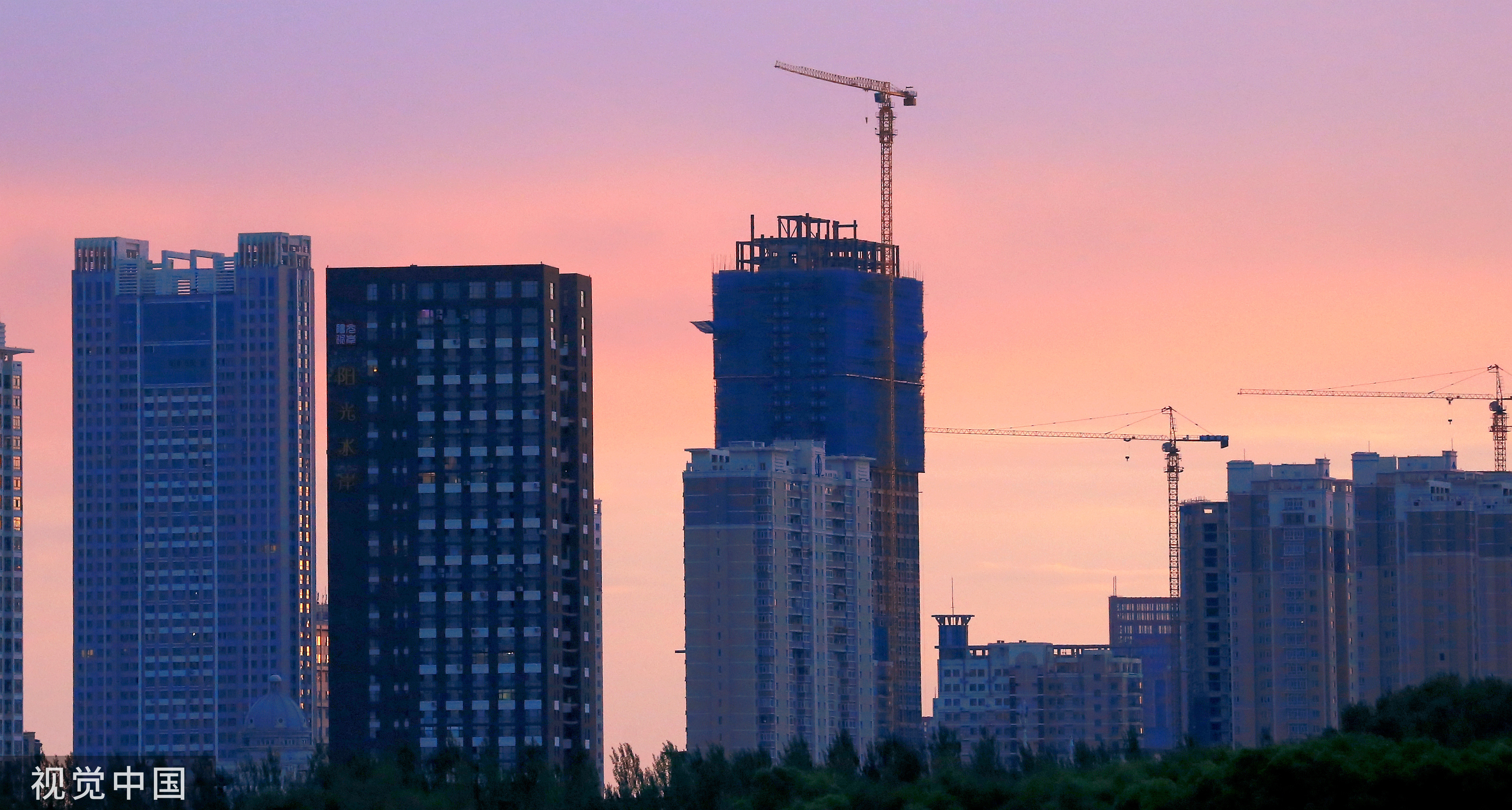 2023年6月3日,哈爾濱,落日余暉中的在建房地產項目。圖源:視覺中國