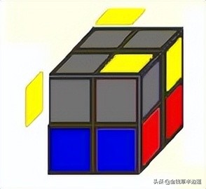 首先我們要做的是觀察頂層的四個角塊分別在什么地方(如果第一步是以白色為底面的話那么頂層就是黃色面)。