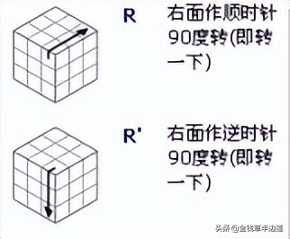 R(right)表示右側順時針轉90°,R’表示右側逆時針轉90°