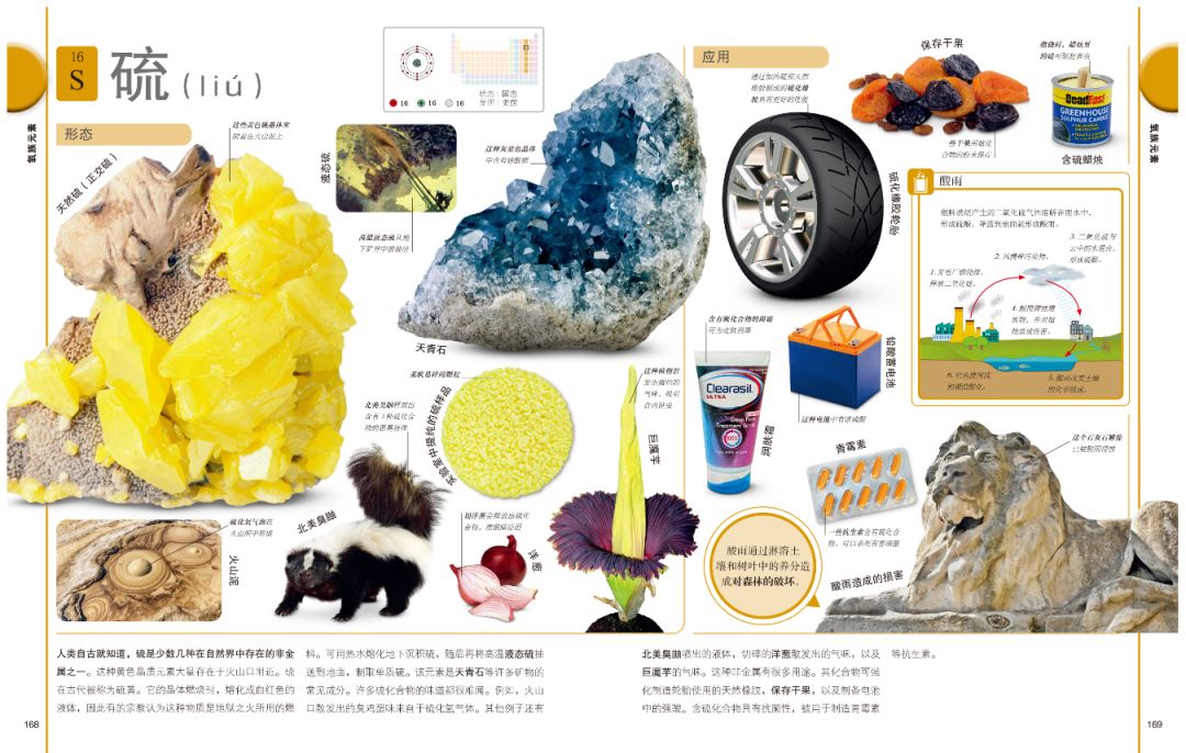 每種化學元素的講解都分為三個部分:在自然界中的形態+在人們生活中的應用+綜合文字講解。